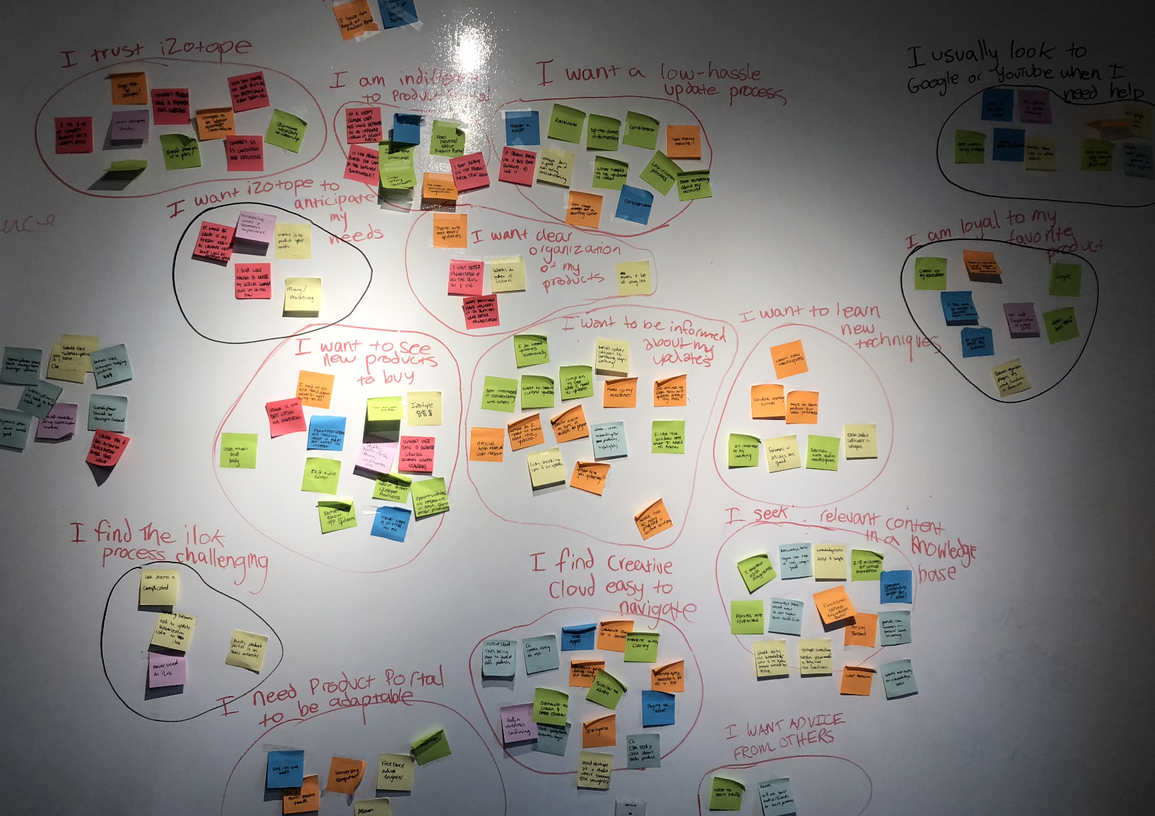 We conducted over twenty interviews with people who had used iZotopes software. I thought the best way to synthesize these findings would be through affinity mapping.